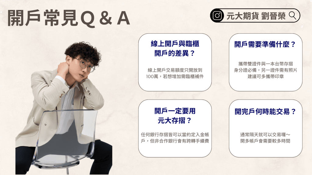 另外,若您有需要開戶多帳號,或您有他國稅籍身份的話,都無法辦理線上開戶,只能臨櫃開戶唷
